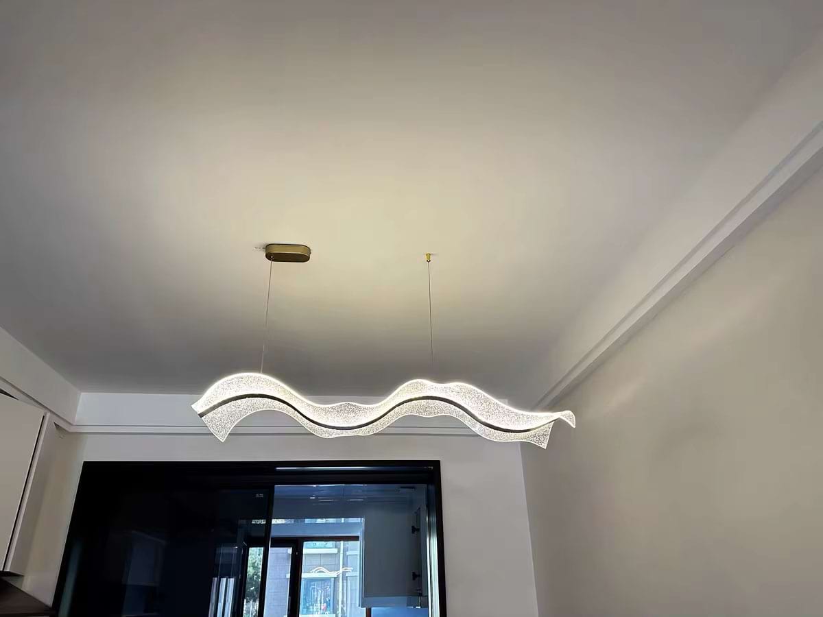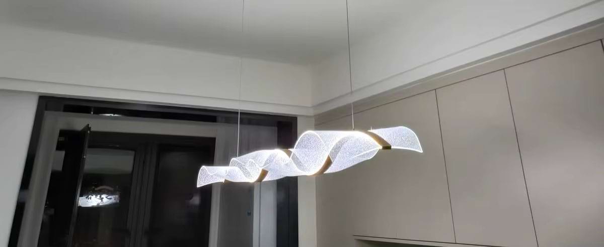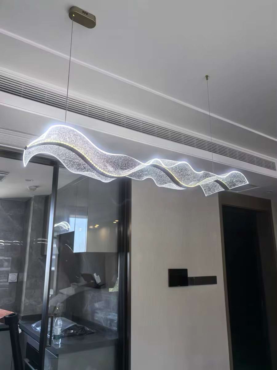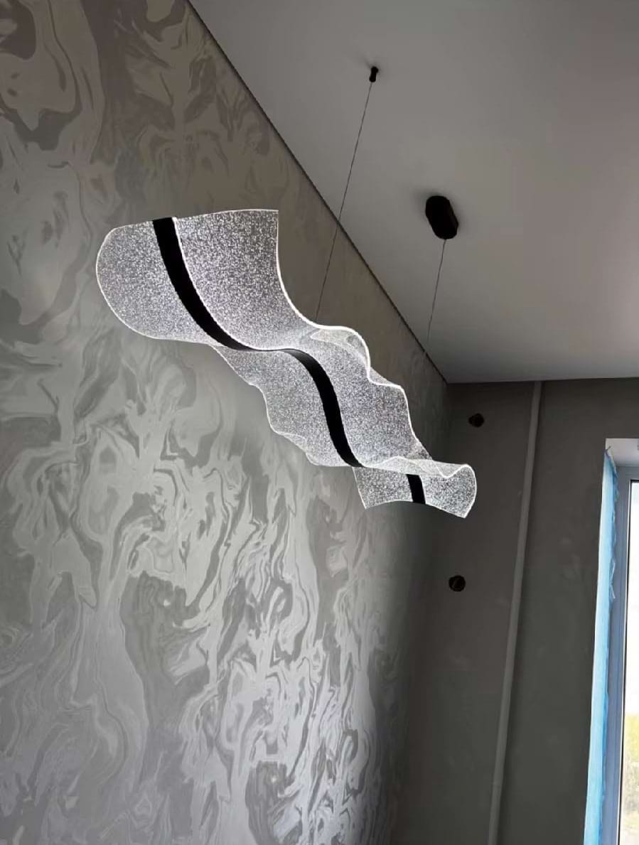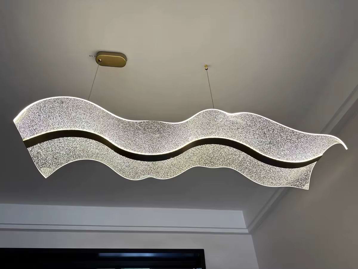The Alon Chandelier showcases a graceful wave-like band of light that instantly adds modern elegance to your space. Its transparent acrylic lampshade, adorned with a fine dotted pattern, isn’t just decorative – it beautifully diffuses the LED glow across the entire surface. The result is a soft, even illumination that feels both refined and inviting.