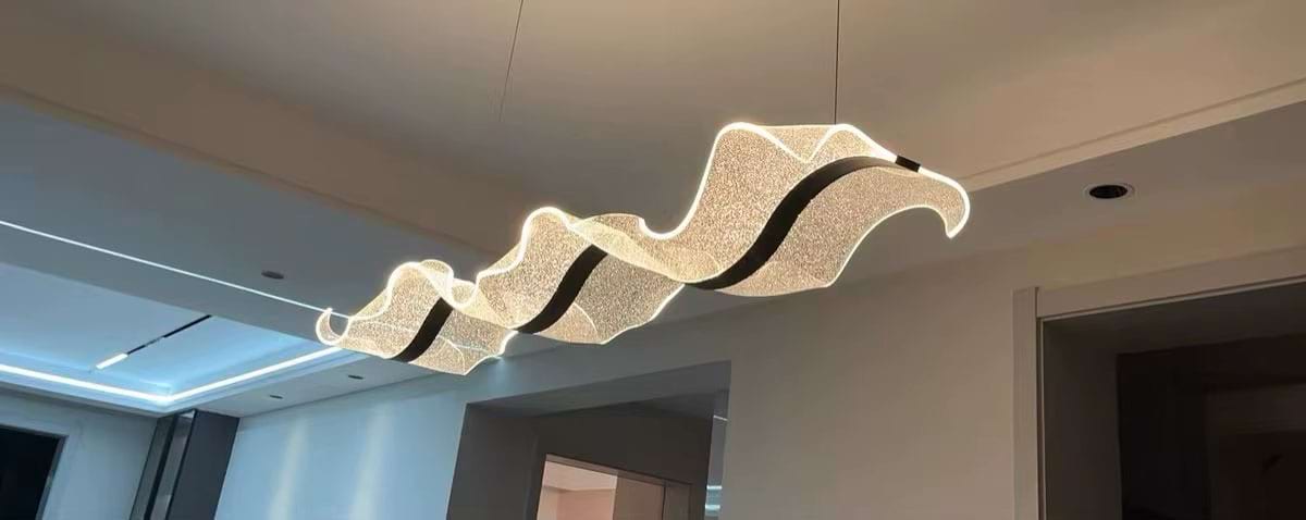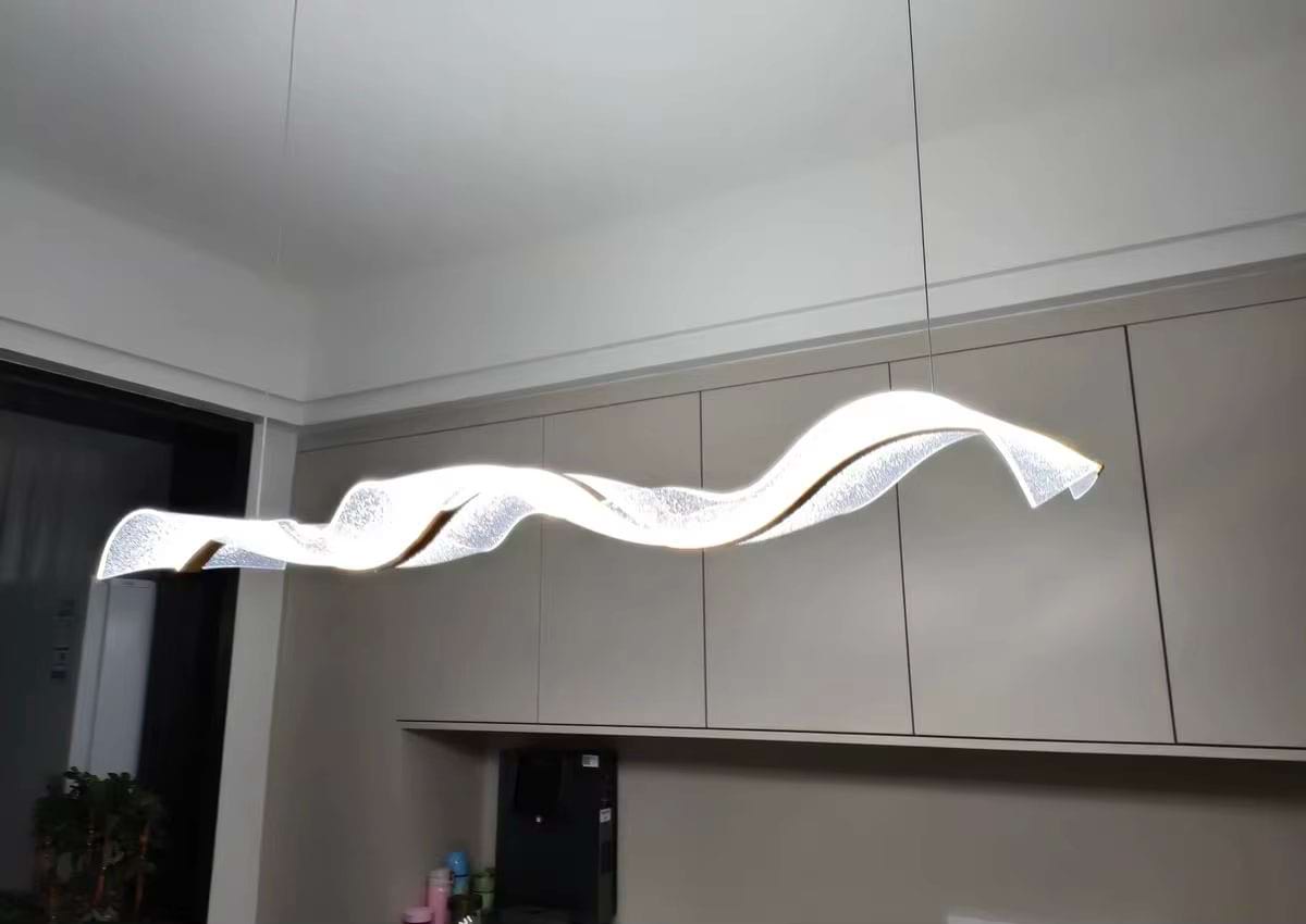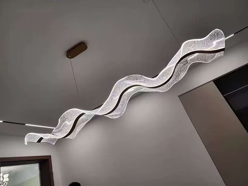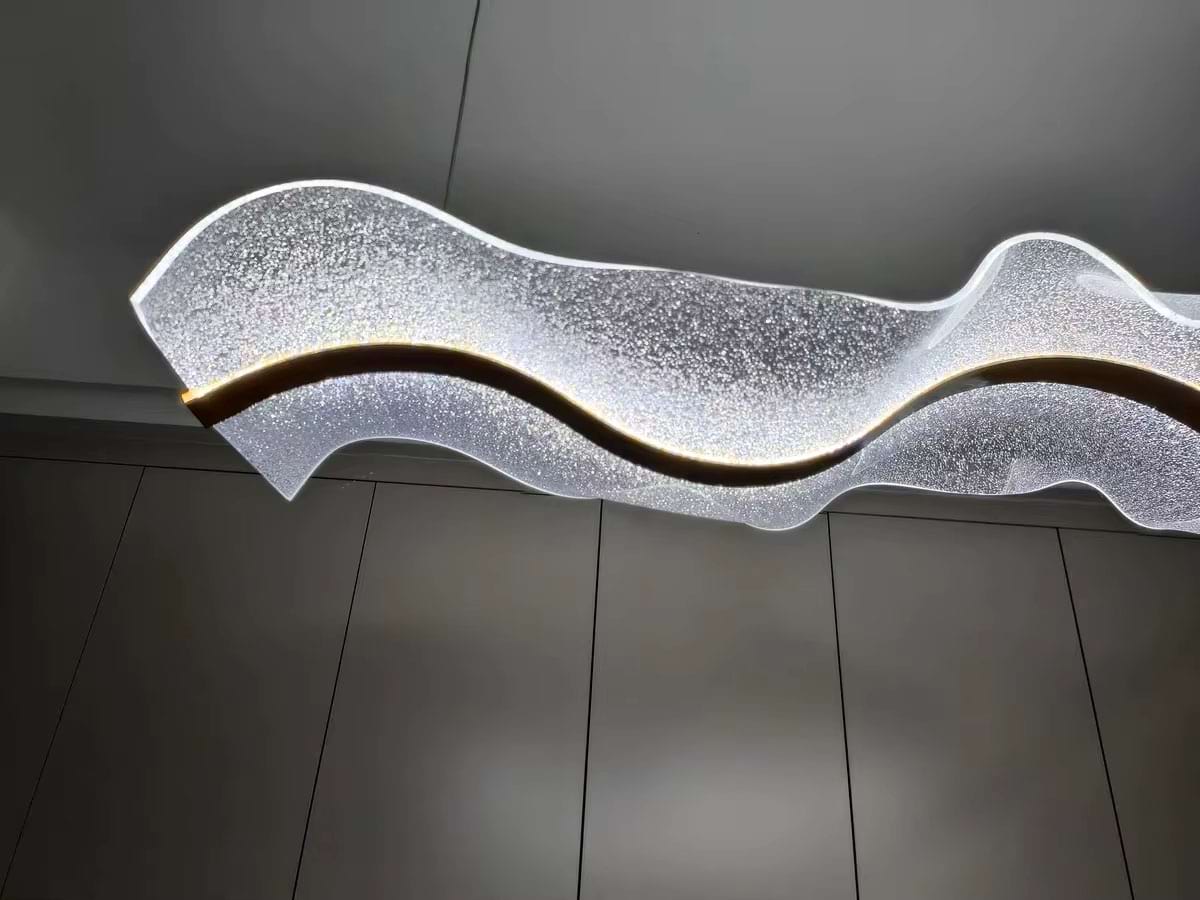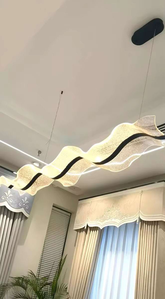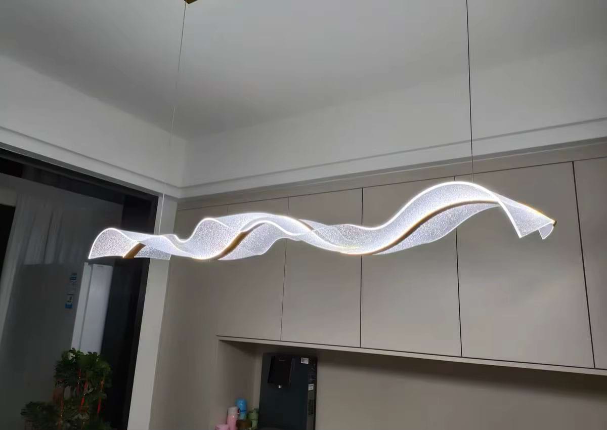 The Alon Chandelier showcases a graceful wave-like band of light that instantly adds modern elegance to your space. Its transparent acrylic lampshade, adorned with a fine dotted pattern, isn’t just decorative – it beautifully diffuses the LED glow across the entire surface. The result is a soft, even illumination that feels both refined and inviting.