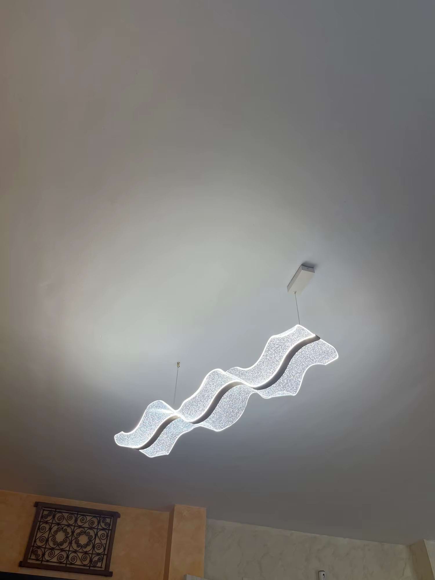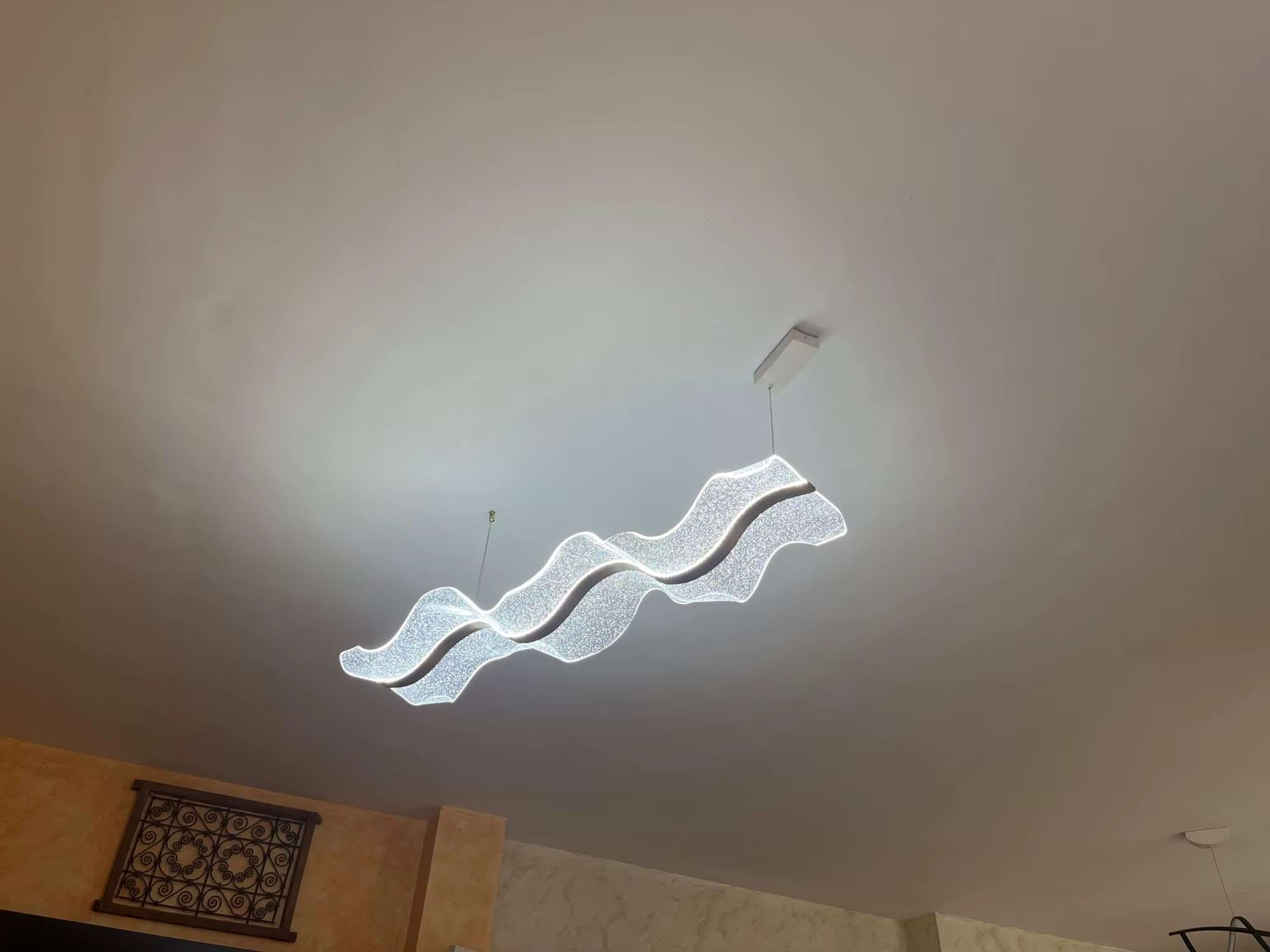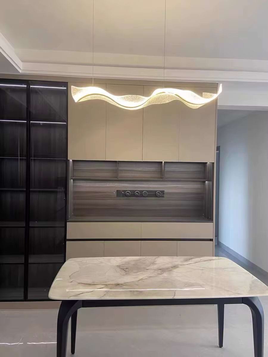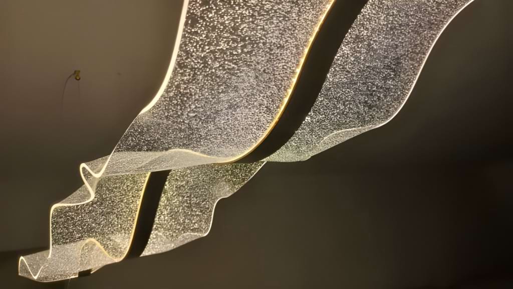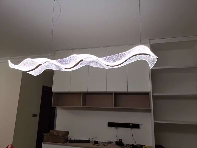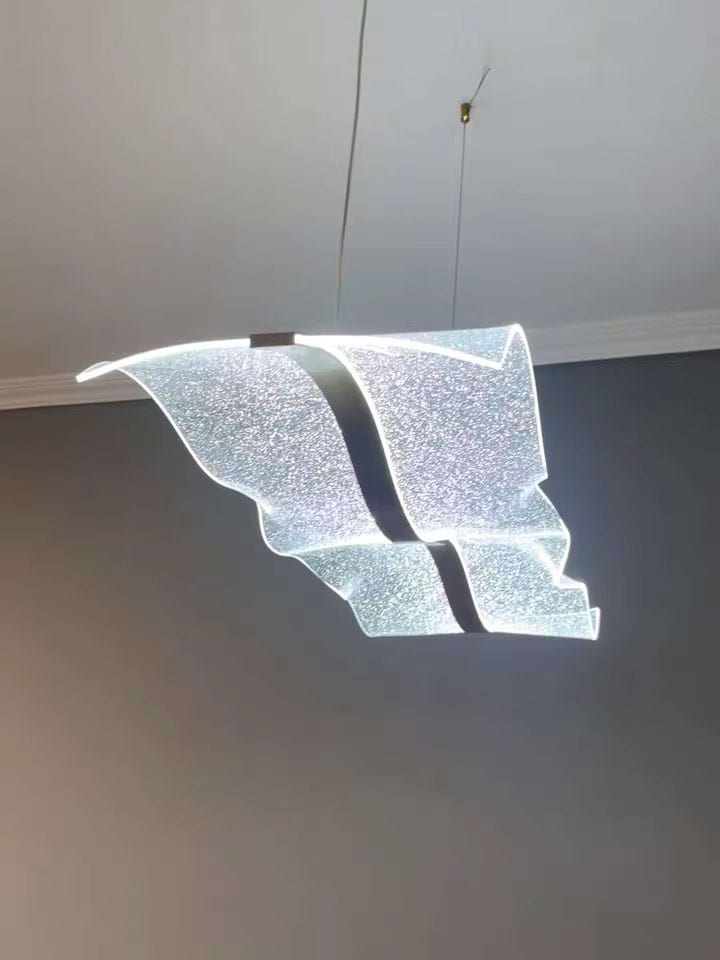 The Alon Chandelier showcases a graceful wave-like band of light that instantly adds modern elegance to your space. Its transparent acrylic lampshade, adorned with a fine dotted pattern, isn’t just decorative – it beautifully diffuses the LED glow across the entire surface. The result is a soft, even illumination that feels both refined and inviting.