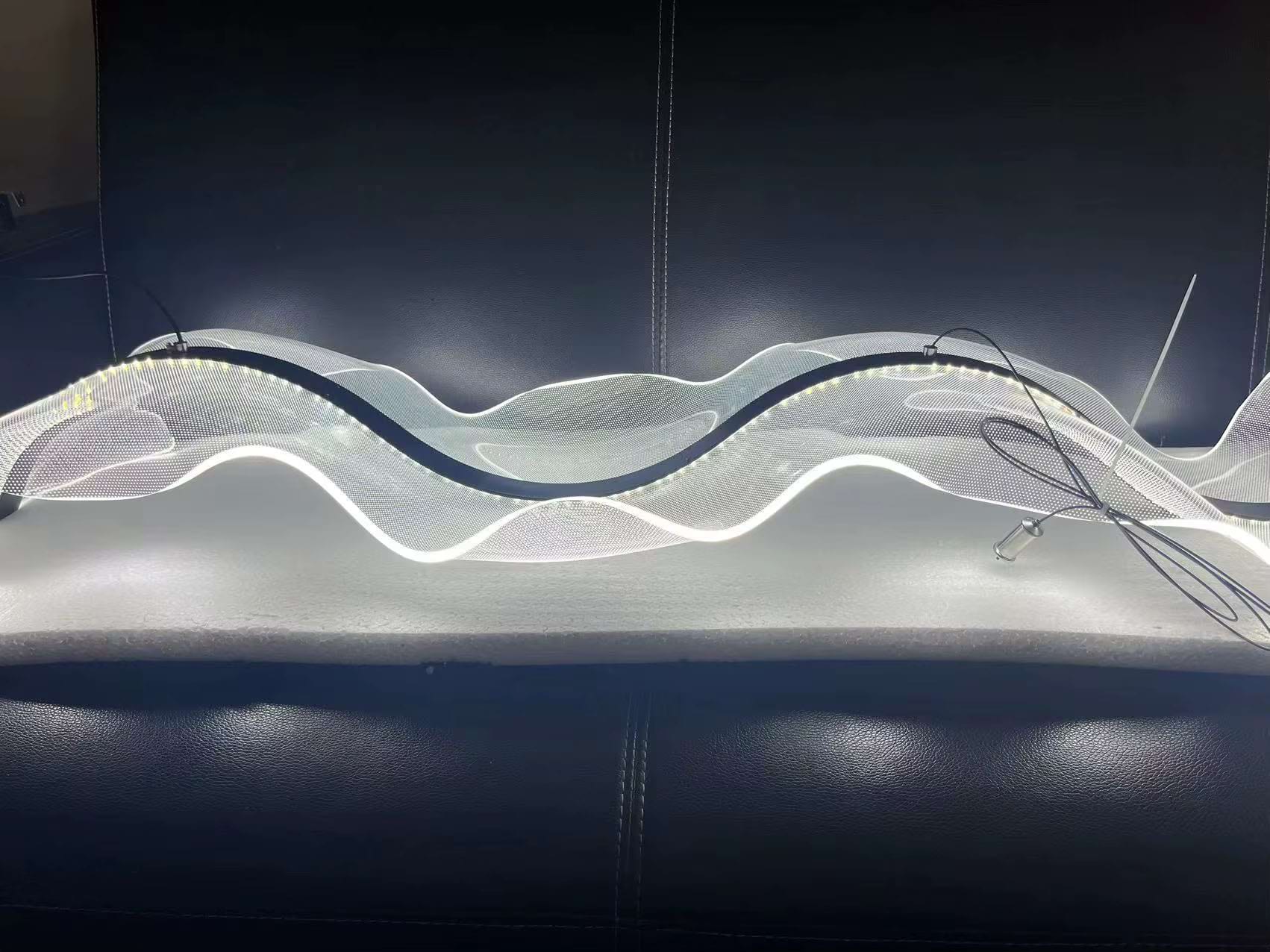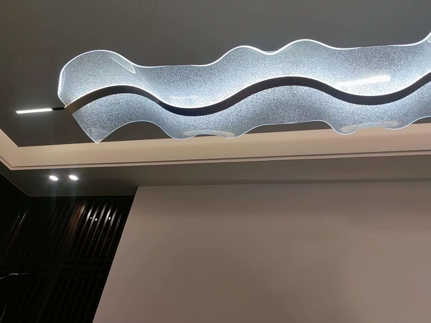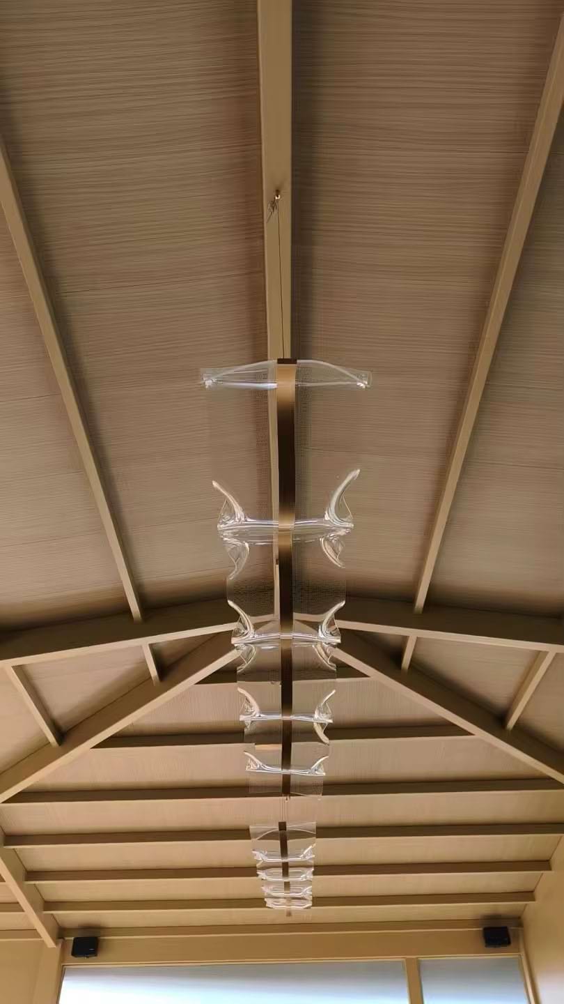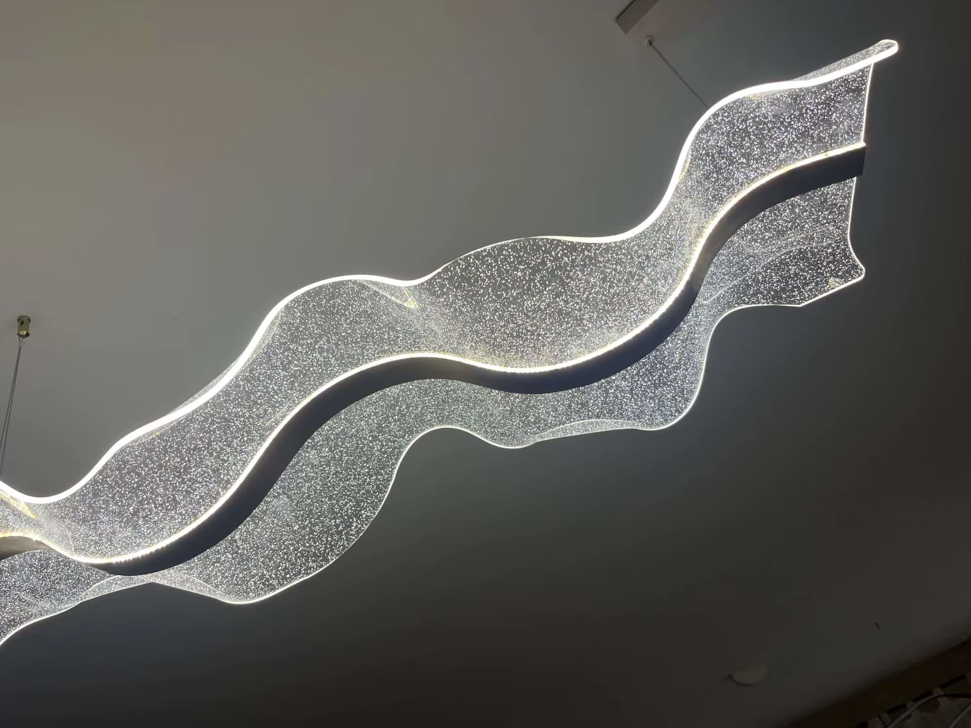 The Alon Chandelier showcases a graceful wave-like band of light that instantly adds modern elegance to your space. Its transparent acrylic lampshade, adorned with a fine dotted pattern, isn’t just decorative – it beautifully diffuses the LED glow across the entire surface. The result is a soft, even illumination that feels both refined and inviting.