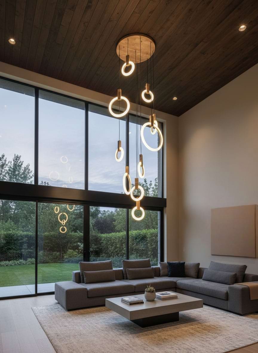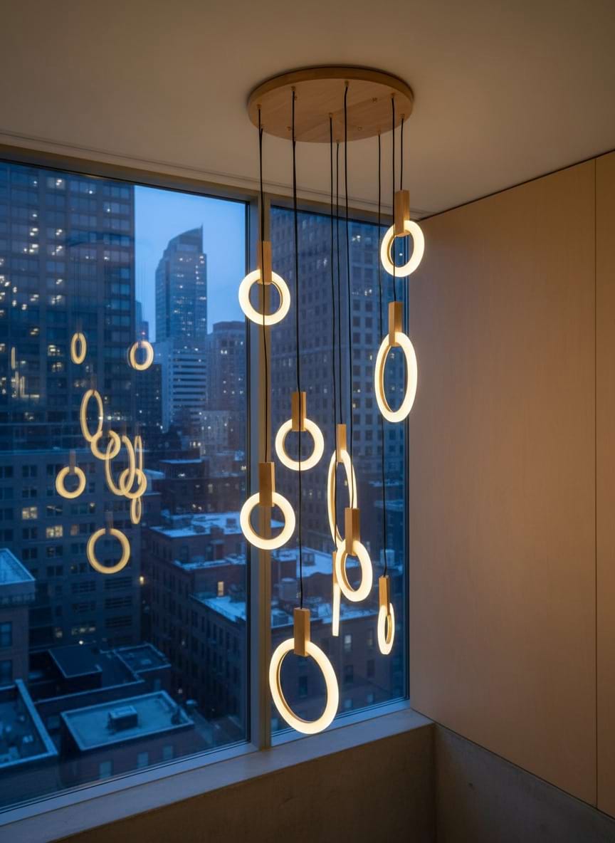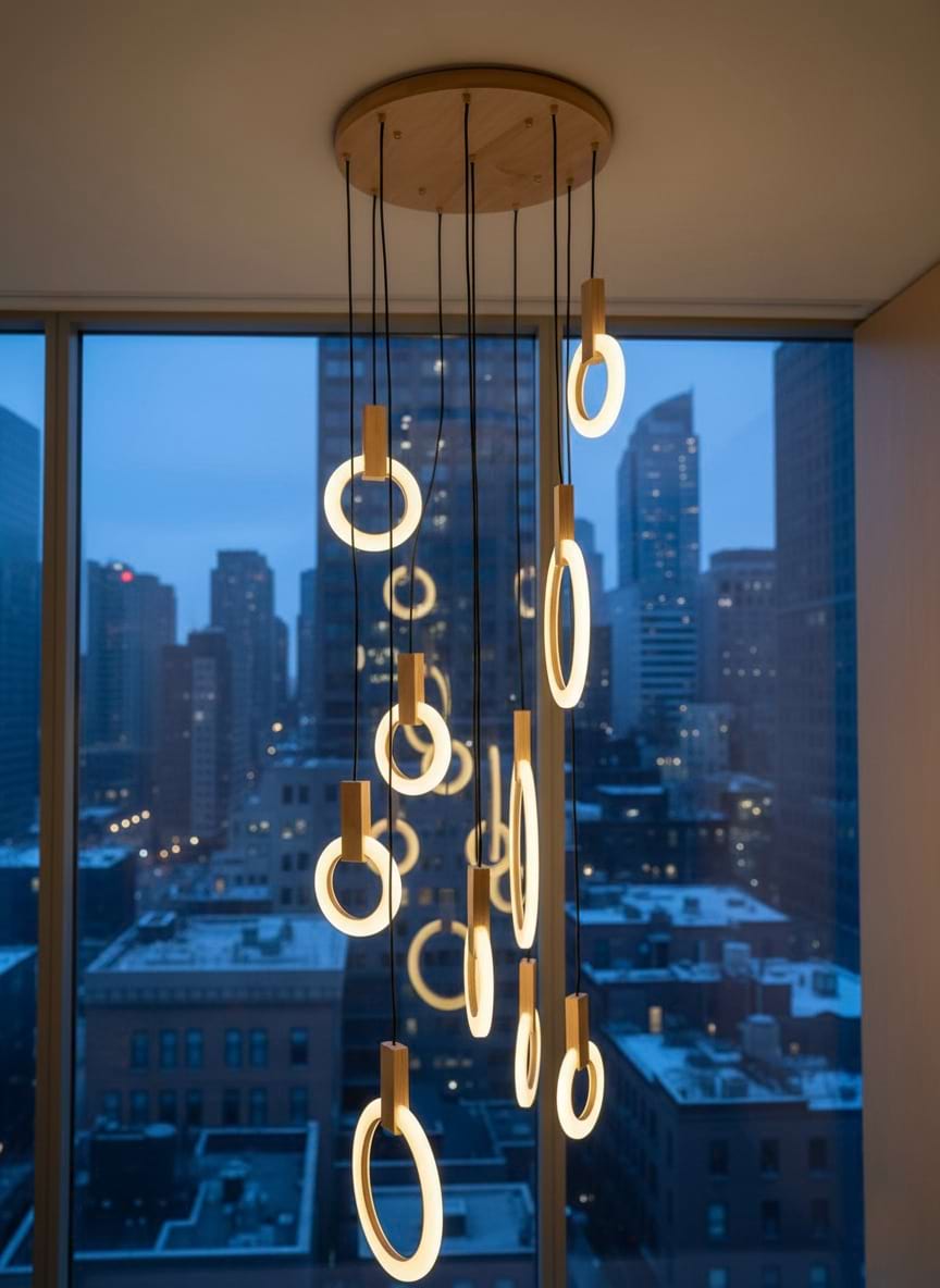 The fixture is eye catching and unique. We ordered the 10 rings. The size elevates it to a luxury level. Cannot wait to finish designing my house around this beautiful piece.