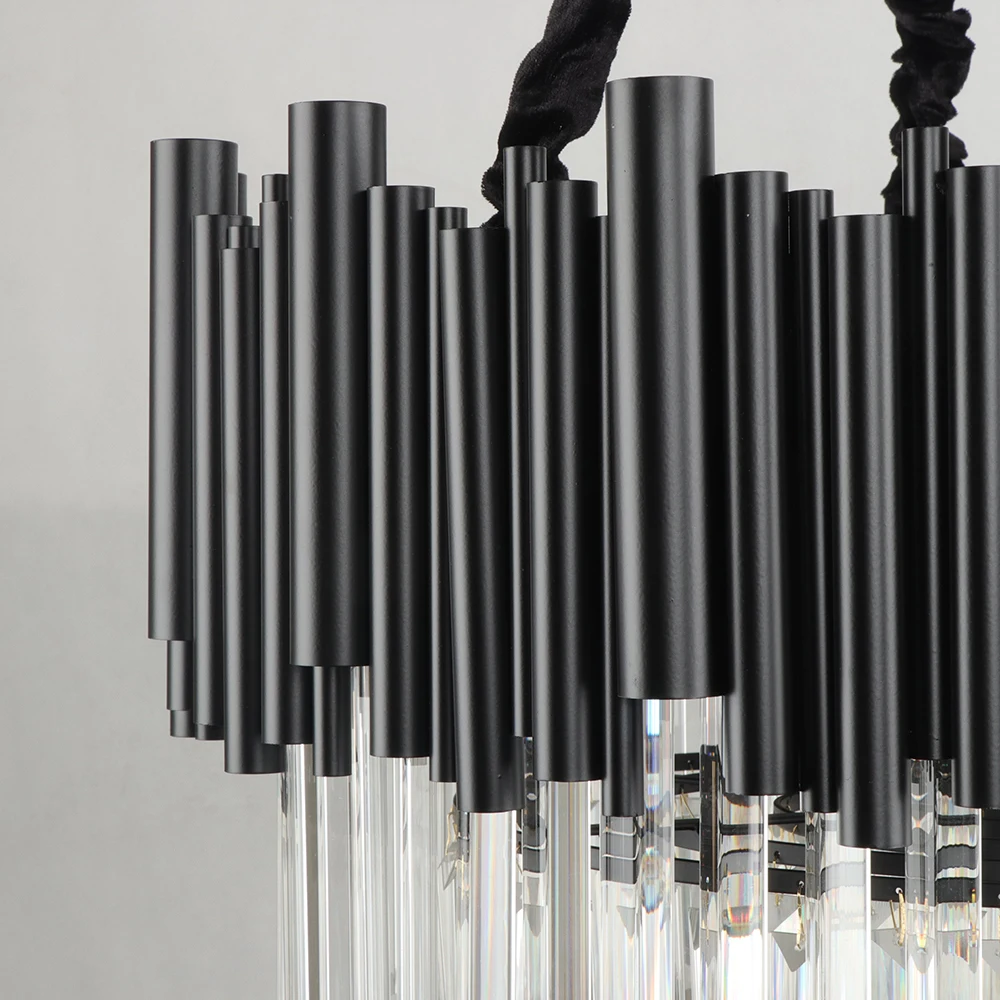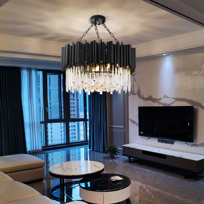 Dressed in an elegant, sleek black finish, the Majestic Chandelier exudes a contemporary charm, while its high-quality crystals reflect light in a dazzling display of brilliance. Each crystal has been carefully chosen and it’s perfect for gracing your living room or dining area. Its presence in your home is a testament to your discerning eye for luxury and style, making every moment under its glow a celebration of fine living.