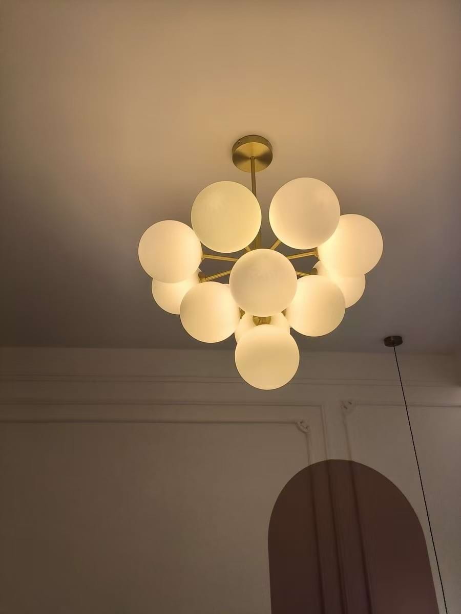 Marais Pointe Chandelier brings a quiet sense of luxury into any room. Crafted from premium copper in an elegant bronze finish, its softly glowing orbs gather like a delicate constellation, creating a warm, inviting radiance. The slender gold stem adds a touch of modern refinement, allowing the light to feel airy, graceful, and effortlessly sophisticated.