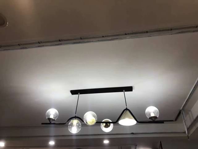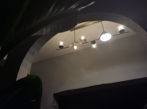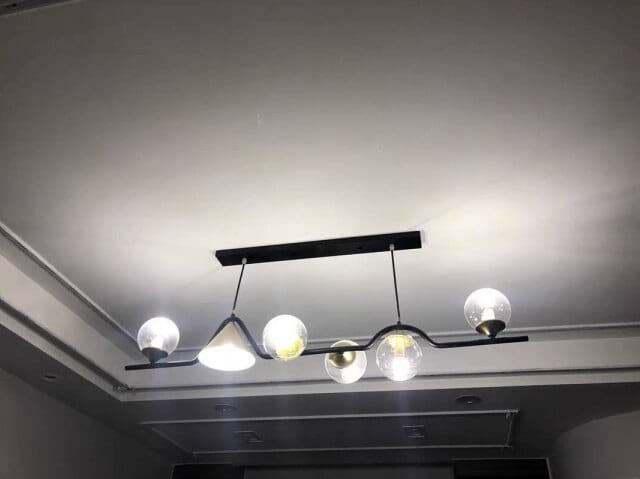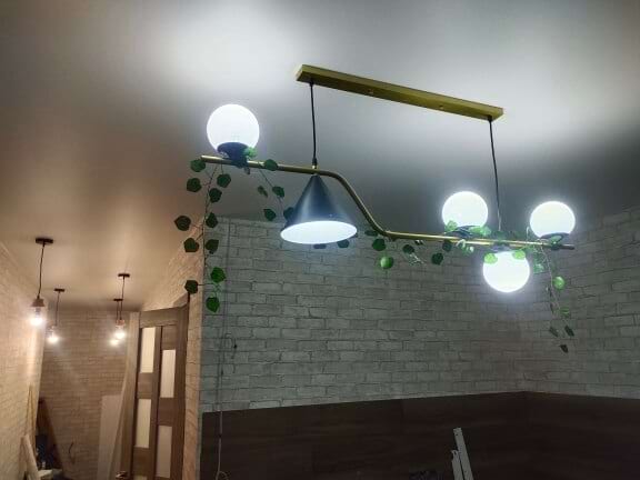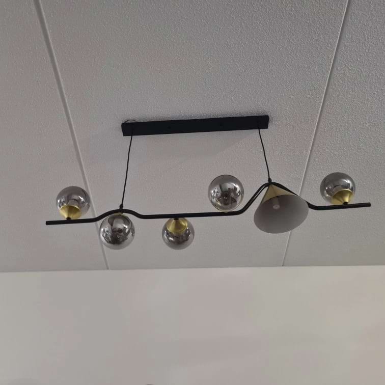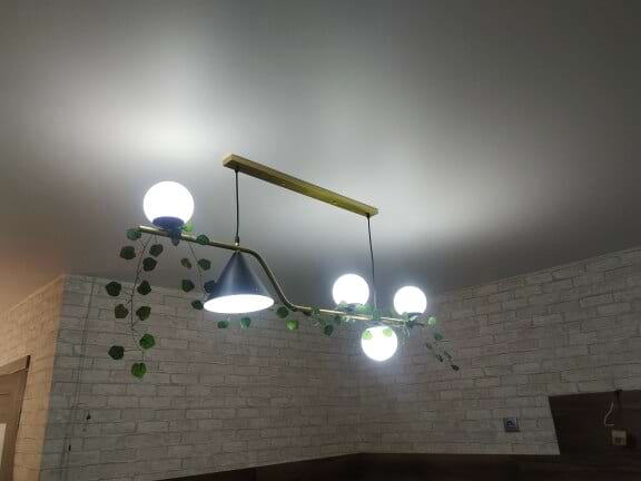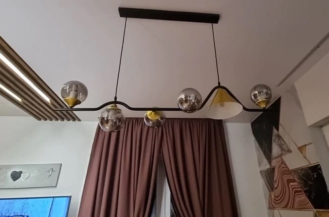The lamp is finally installed on the ceiling of our living room. It looks amazing! I am very happy!