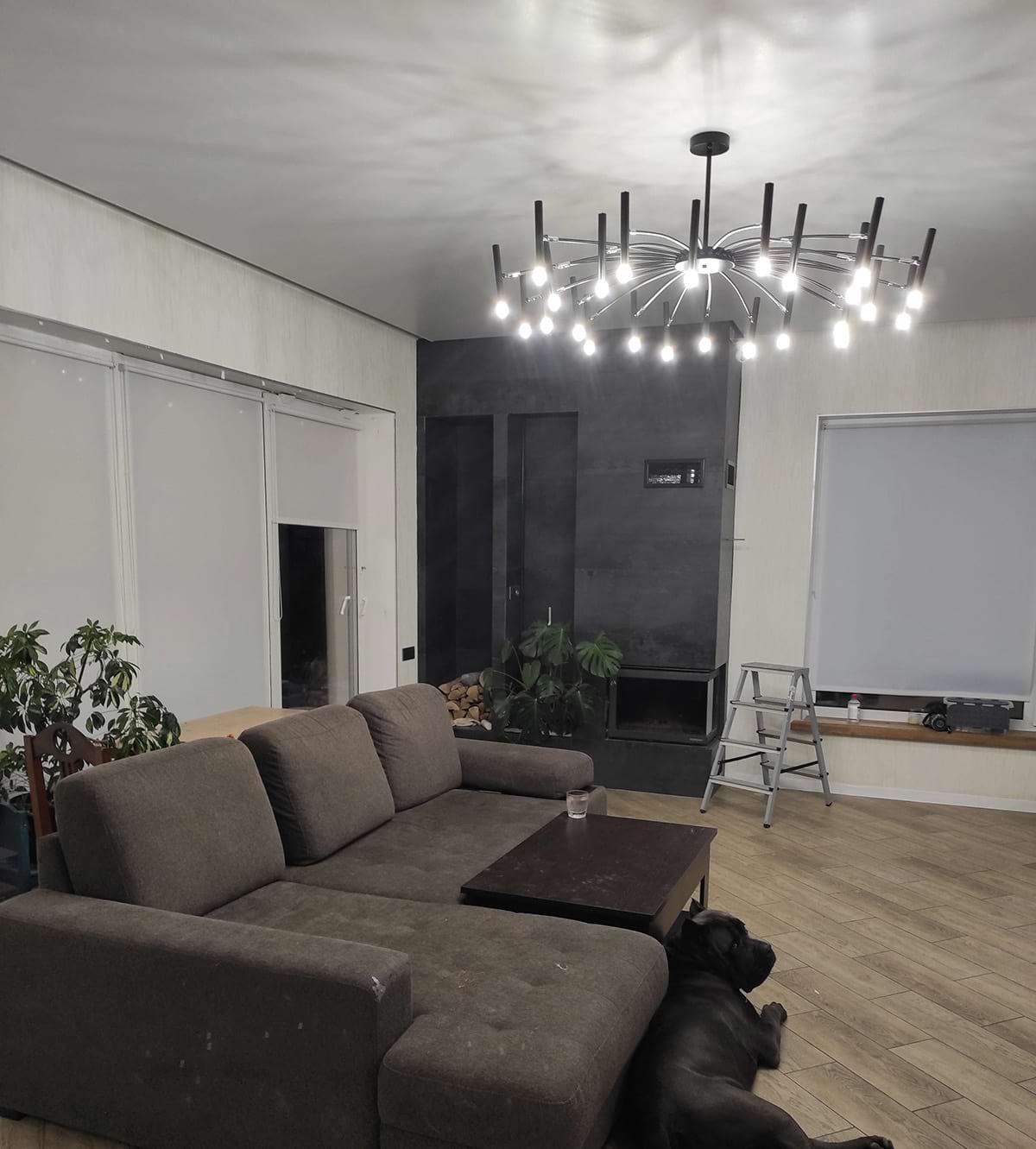 This chandelier brings an effortless elegance to our space. Its sleek lines complement my modern and minimalistic decor. The quality of light is great, it has made our evenings at home much more pleasant. We love it so much!