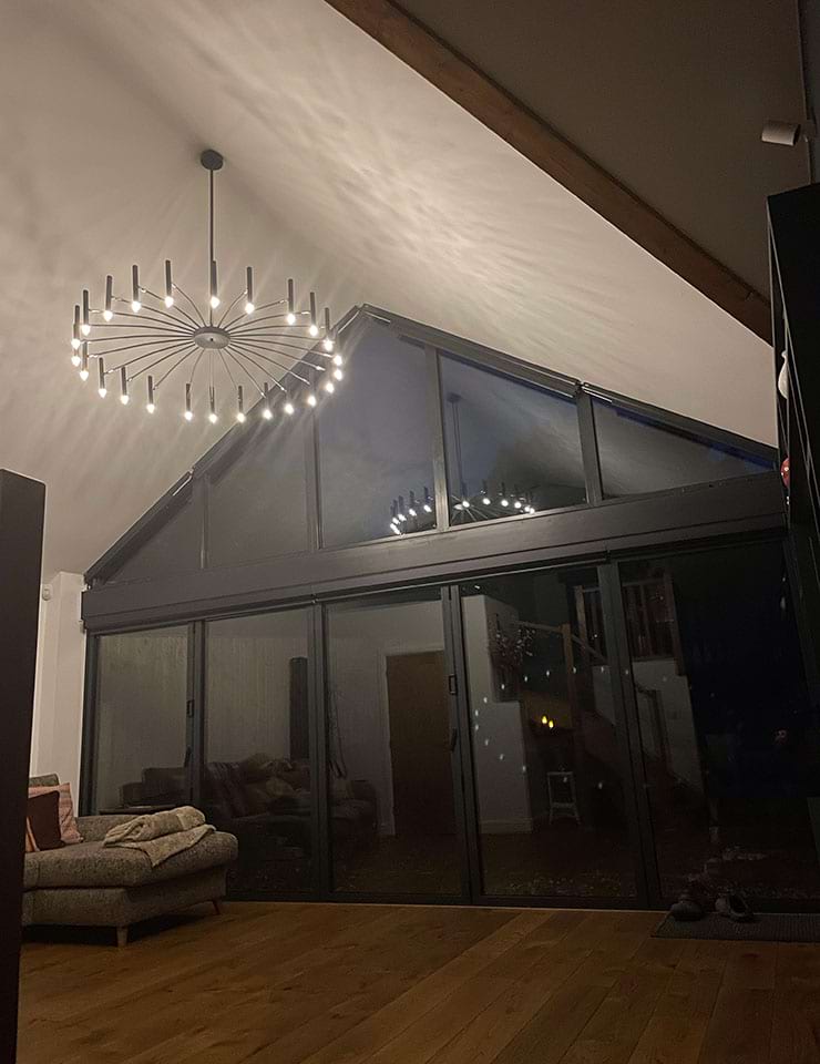 We were looking for a statement piece that was big without blocking the space. This light was perfect. It took a little while to put together, but not difficult. We went for the 120cm diameter and got some extra poles so the drop was 100cm. It looks perfect. We have had a number of compliments about the light. We put in dimmer bulbs which work with the light rather than the bulbs that came with it. The whole experience and support from Customer Service was excellent. We asked for advice about the extra poles and they kept us informed of the slight delay in delivery due to a holiday.
