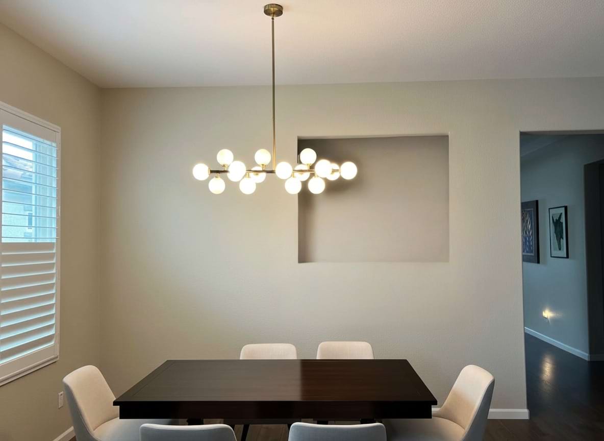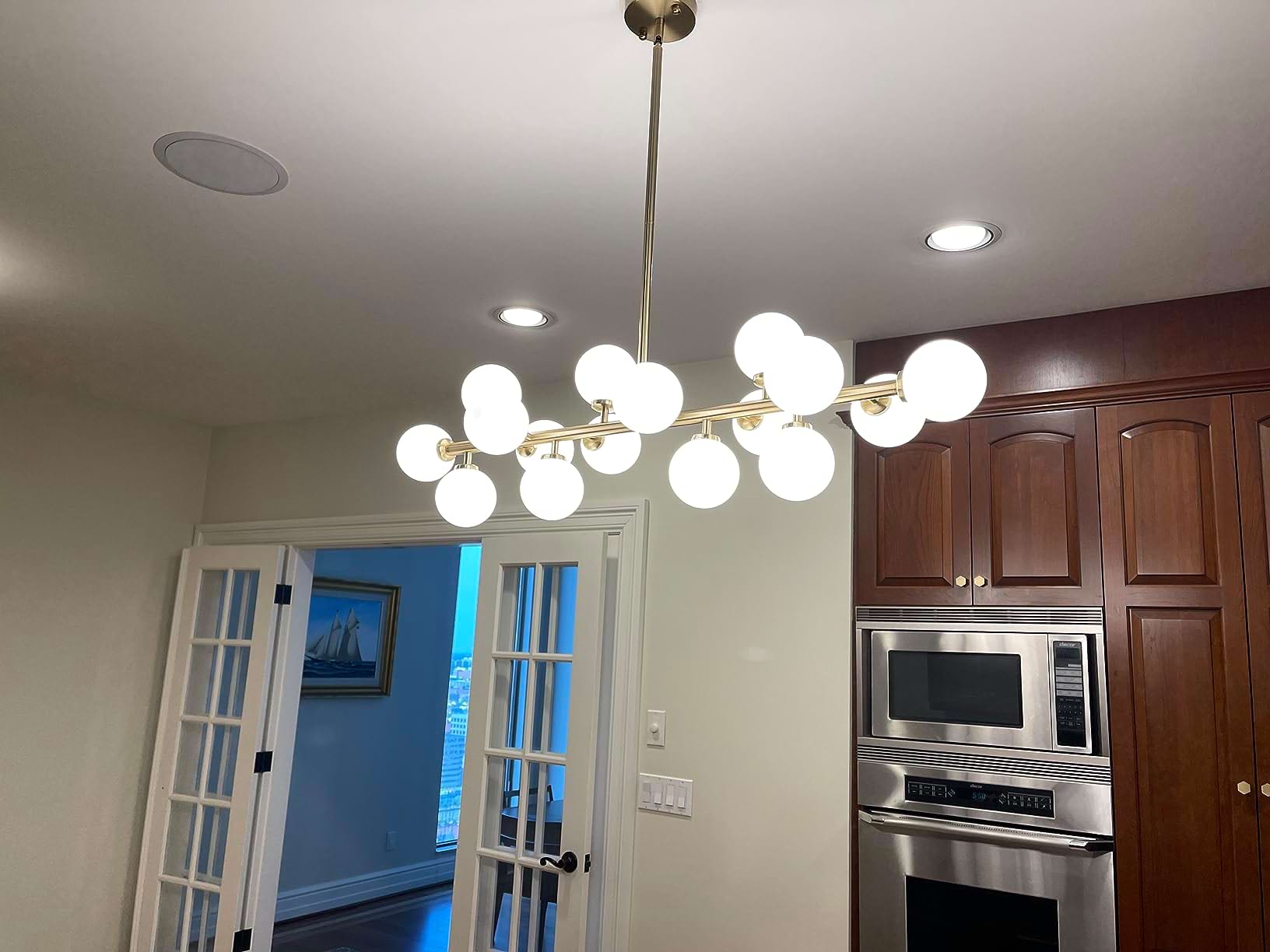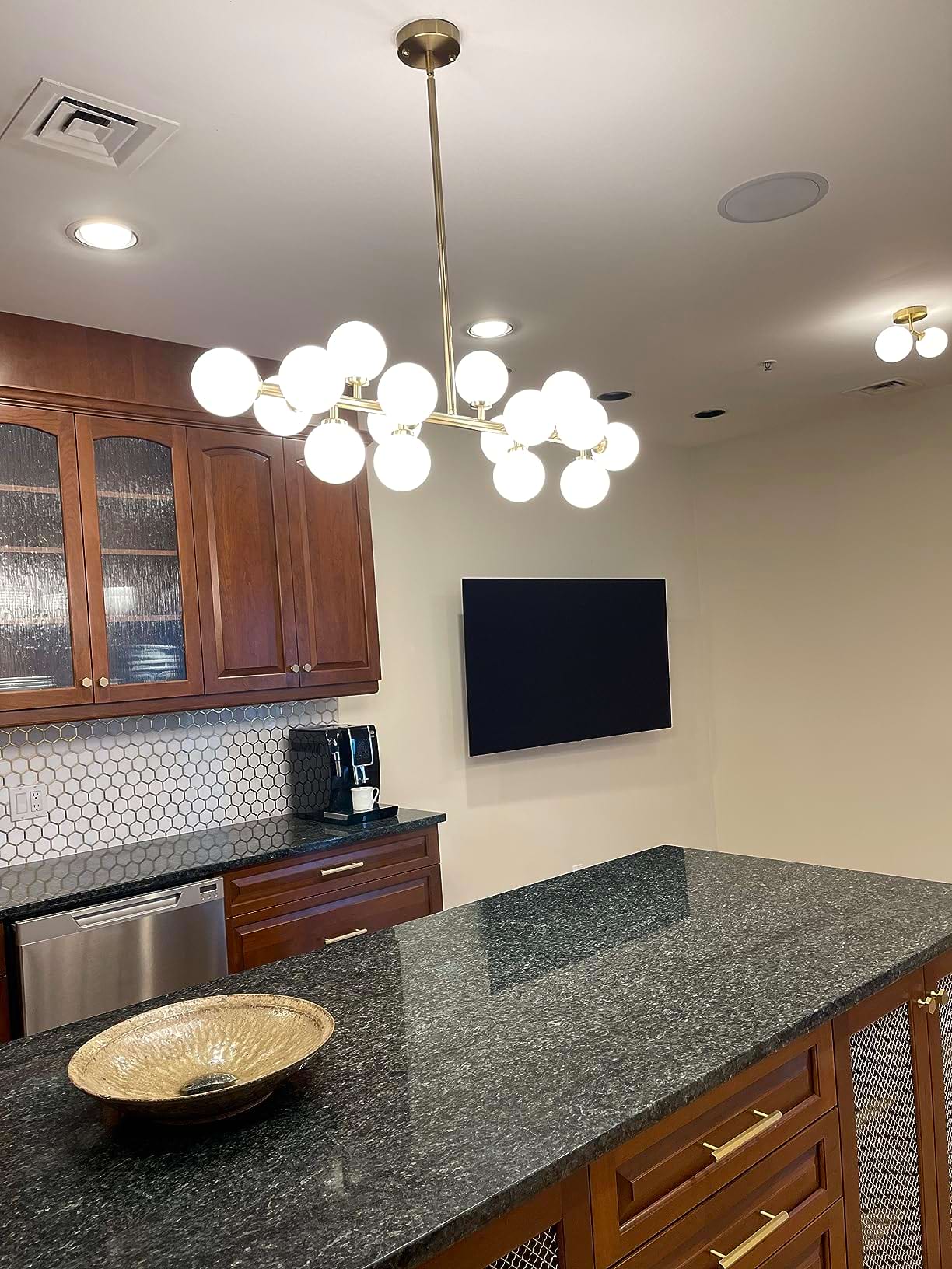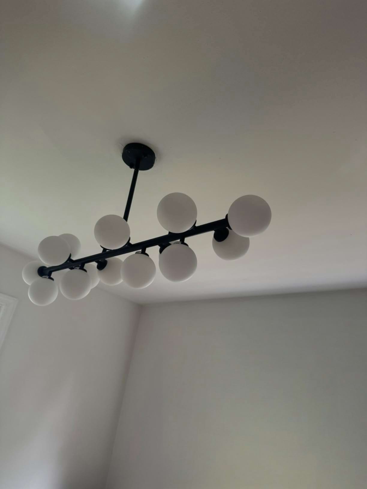 We have another fixture similar or just like this, and needed a matching one for our dinning room, and was thrilled to find this. It’s such a good piece, we wanted another one. It’s a quality fixture with beautiful modern and timeless charm. It comes with 16 quality glass bubble balls with a brass frame. It’s classy and stylish. It’s a great focal point and also provides great lighting.