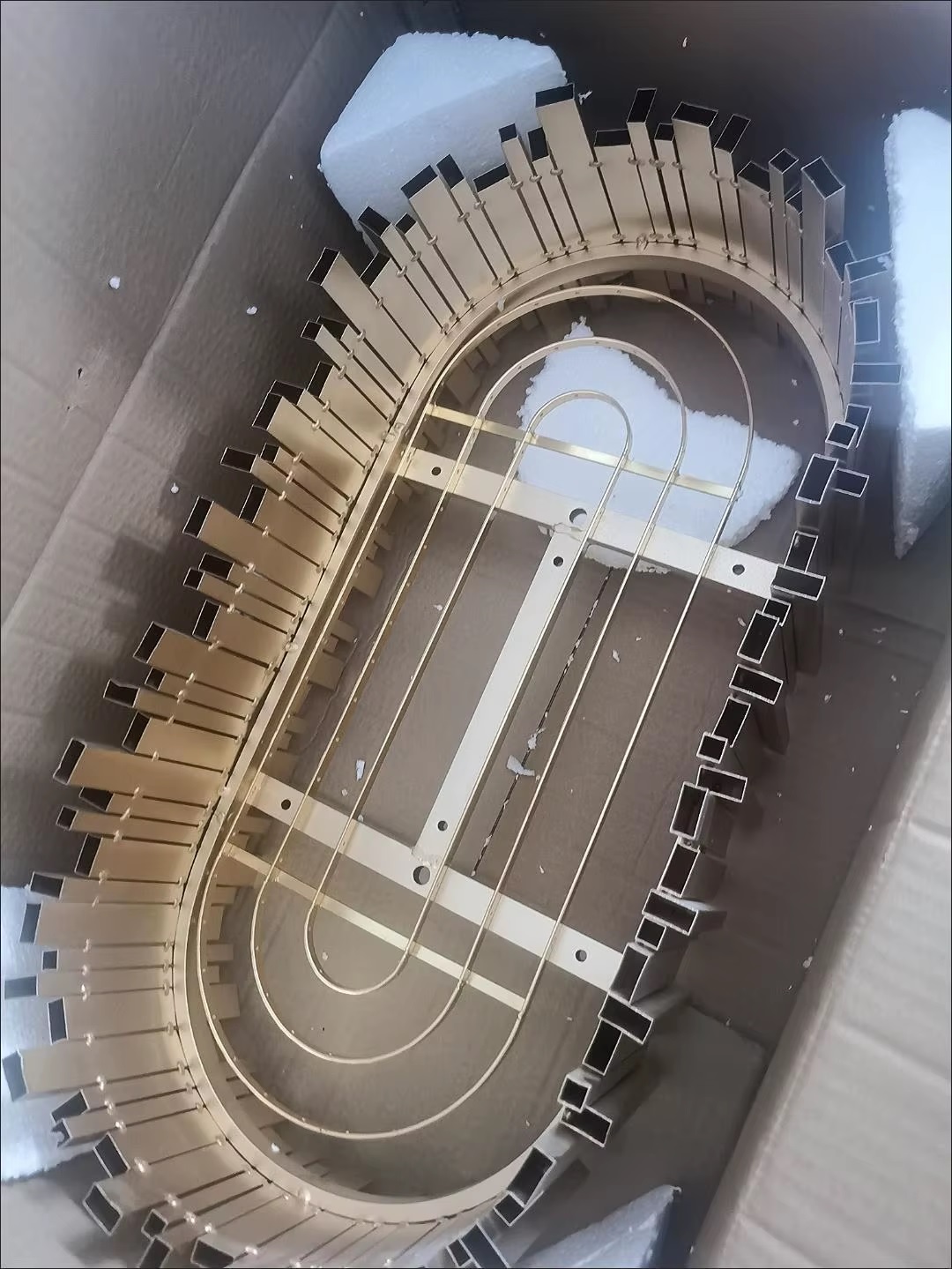1, Our Zen chandelier uses 1.0mm stainless steel vacuum electroplated high-quality shiny gold. We finely polish each square tube to avoid defects on the stainless steel surface as much as possible. (However, cheap products use 0.4mm stainless steel or aluminum, and each square tube will not be polished, resulting in many scratches on the surface of the product.)