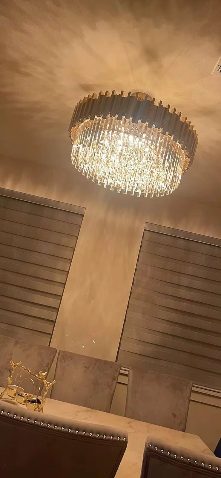 This chandelier is gorgeous! The crystals catch the light and sparkle, really brightening up our living room. It’s got this luxurious, elegant vibe that makes me feel so fancy every time I see it. We are satisfied with the order.